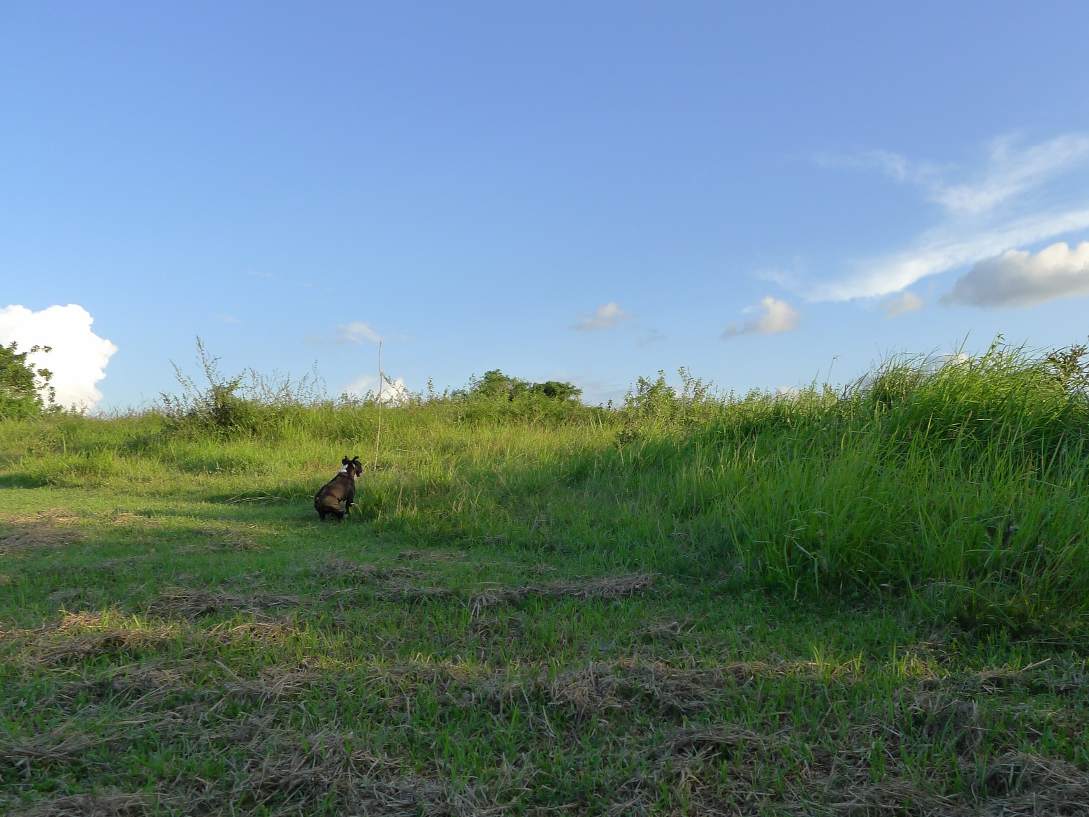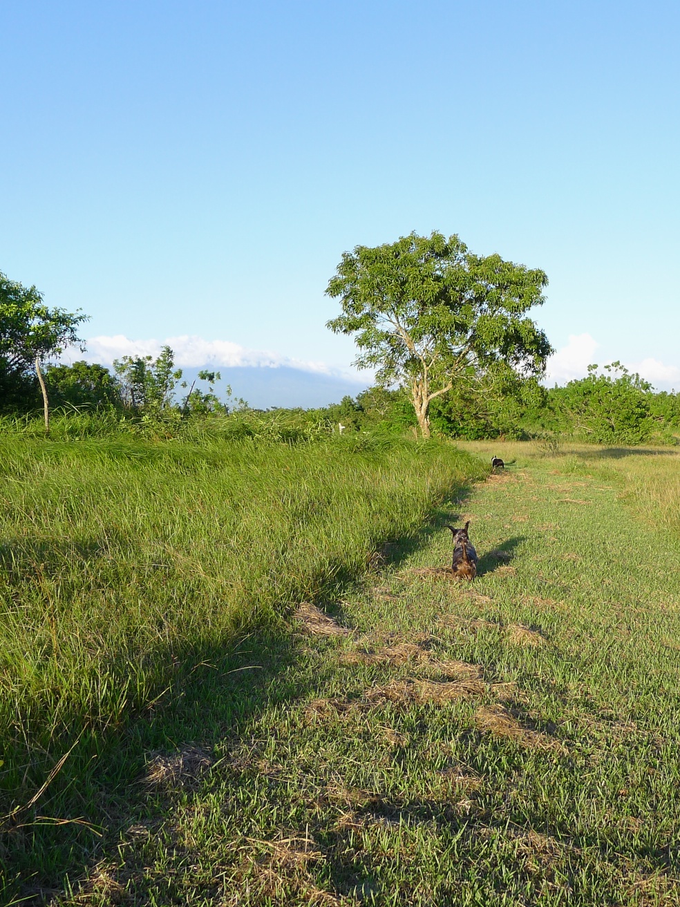Then there was the incident with the feral chickens. That has been our scariest incident so far. A farmer set up a bahay kubo (small native hut) in a field beside our farm. After a few months, he abandoned the hut and left behind his chickens who went semi wild. One day I was alone with the dogs when they suddenly noticed the chickens and gave chase! At first I found it funny. The chickens were fast and the grass was tall. I could see one chicken up a tree, one chicken hiding quietly in the grass, and the dogs jumping straight up in the air in their attempt to find the chickens. Then it got scary when I couldn’t see the dogs anymore and had no idea where they were. I called and called for a long time. I expected Momo, the more obedient one to come running back. But to my surprise it was Barkley who returned! I carried Barkley back with me so I could find the caretaker to help me look for Momo. The caretaker heard Momo give a little yelp. When Momo came back he had blood on his tongue. I don’t think it was chicken blood. I think he cut it on some plants. He was so wired though that he growled and barked at the caretaker. He looked so wiped out that I didn’t think he could walk back. I carried him to the car.