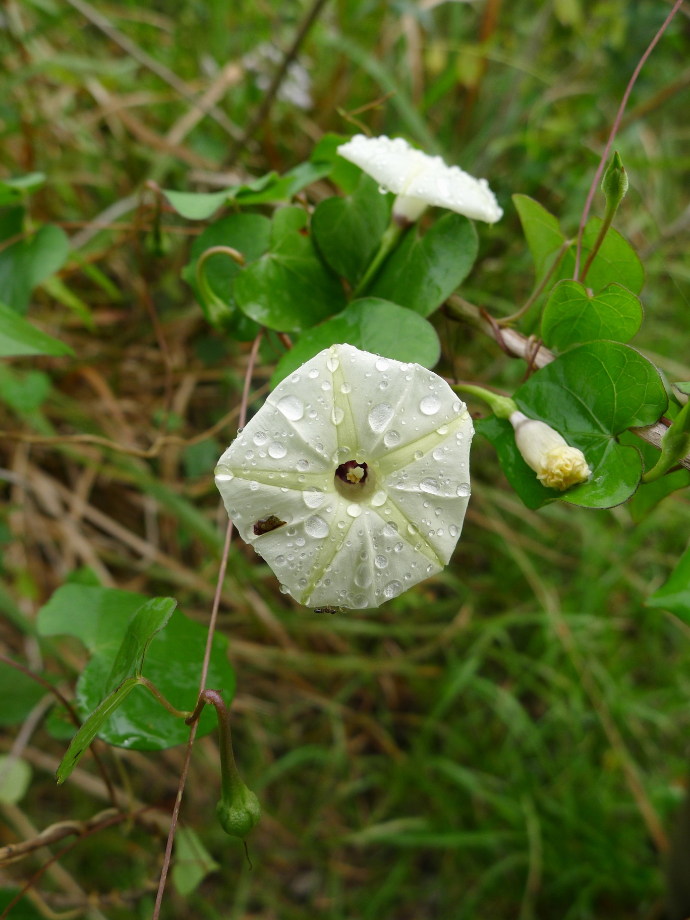 The funnel shape looked very familiar! I had seen many other similarly-shaped flowers before. I was quite sure that the funnel shape was a family characteristic. I googled “plant family funnel flower heart shaped leaves” and came up with Convolvulaceae, the Morning Glory family. It was very satisfying to look through the Convolvulaceae family in PhytoImages and find a photo of the same exact plant! Of course I could be wrong, but it looks exactly the same. So now I know this wildflower’s name. Obscure Morning Glory Ipomoea obscura.