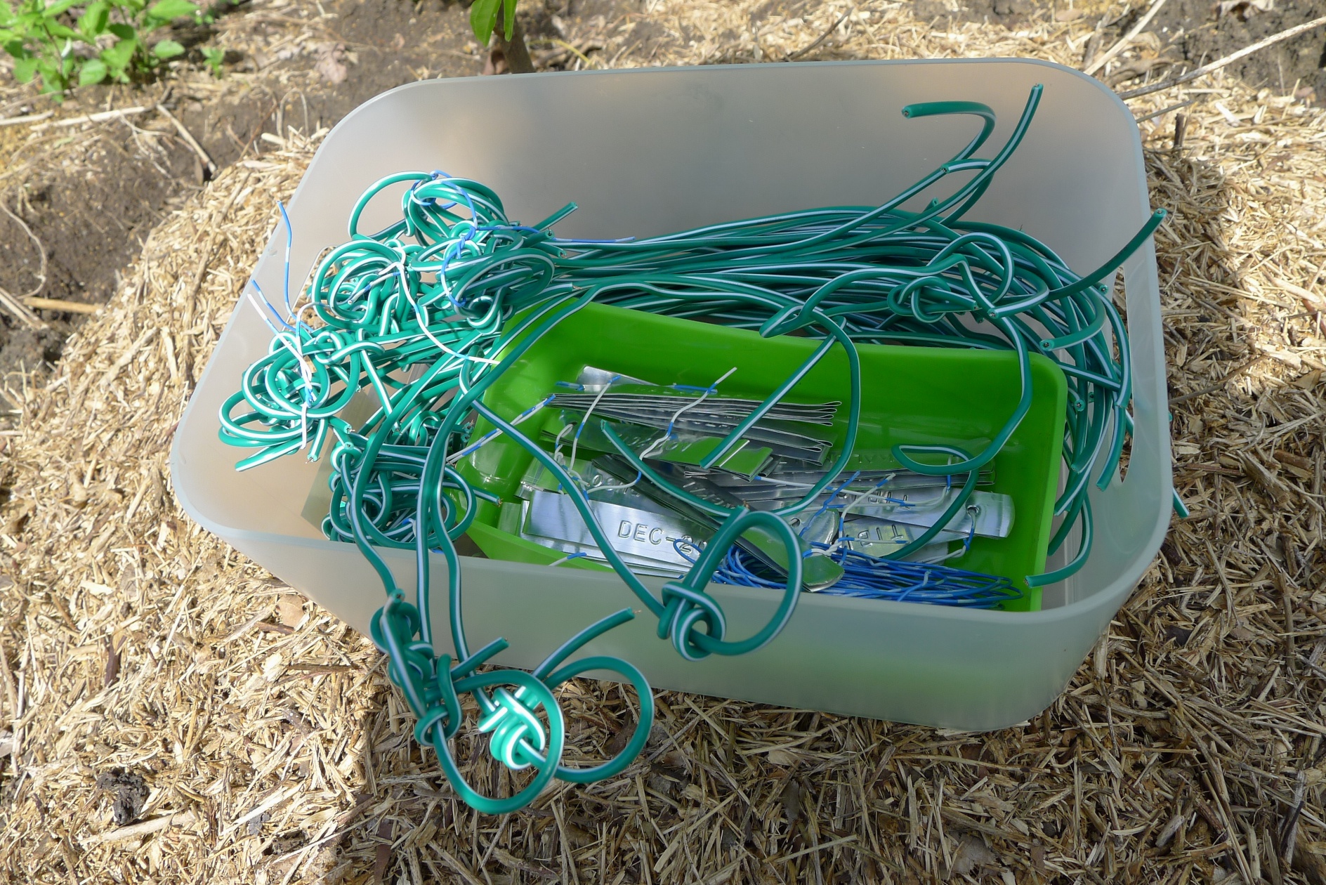 Then I cut the wire to an appropriate length. I made sure to leave enough allowance for future growth. I prepared enough wires and tags for all the trees.