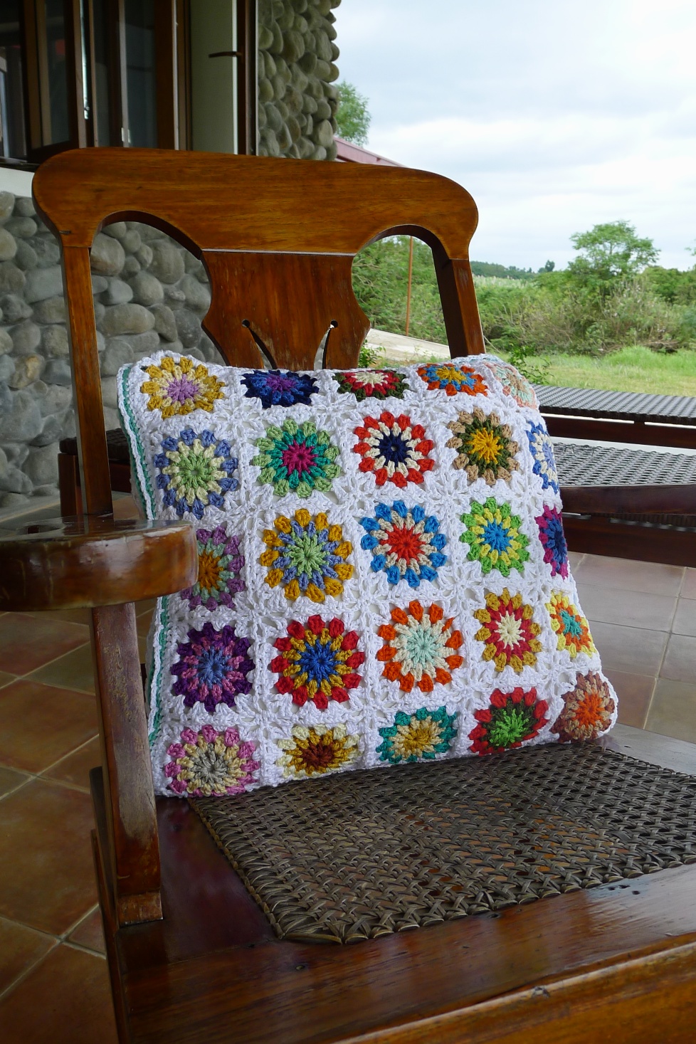 Since I was making a pillow cover, I had to make a back. The back is crocheted as one giant granny square.