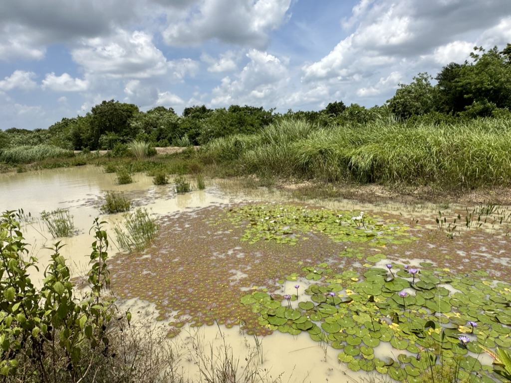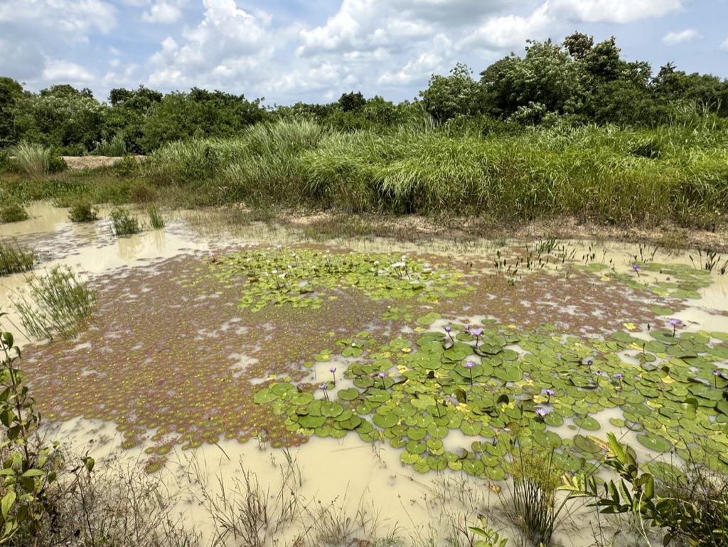 The rain made it hard to work but it was very good for the other ponds! The water level in the water lily pond went up and the plants were thriving.