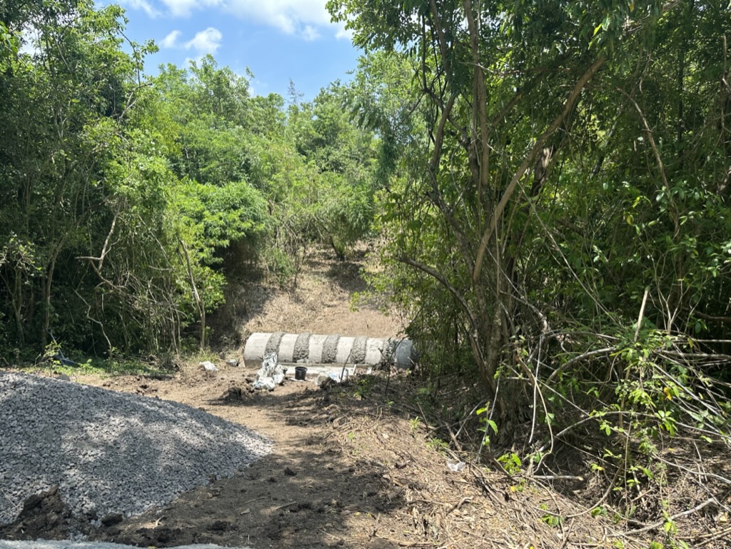 Work on the big pond was stopped for more than 20 days, almost a month because it was too rainy. They were able to start again in August. Things started moving along quickly!