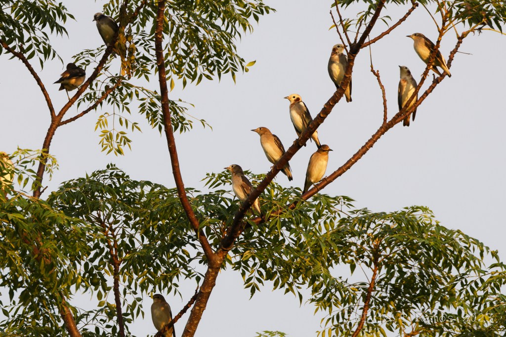 Chestnut-cheeked Starlings are exciting birds to watch. They gather in big flocks and fly together from one tree to another. They have the ability to disappear into the tree they land in! One moment you see a big flock of birds, and the next moment they’ve disappeared! Tonji estimates that there were 300 Chestnut-cheeked starlings in our place. It was difficult to get an accurate count because they were in small flocks and would show up in different spots.