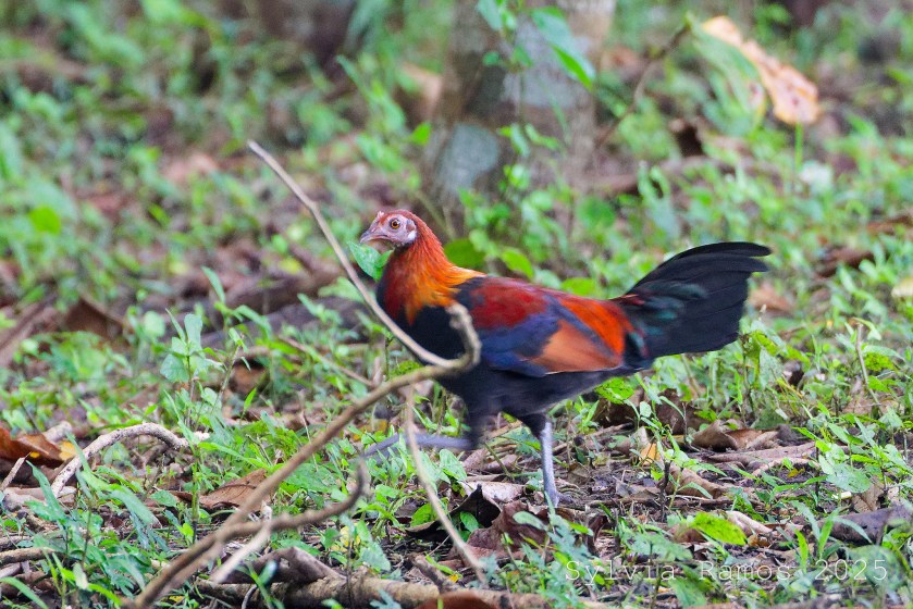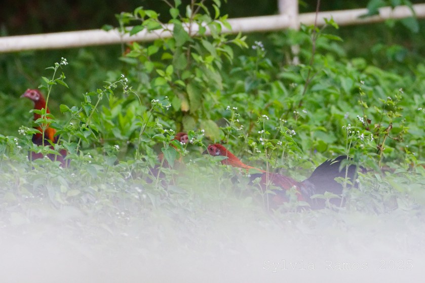 The Red Junglefowl are hanging out in the horse paddock area. I saw them several times in the same area.