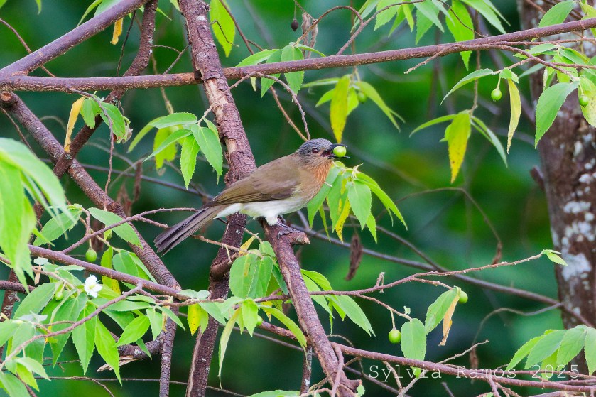 I never get tired of seeing and photographing these three resident birds, Red Junglefowl, Philippine Bulbul, and White-eared Brown Dove.