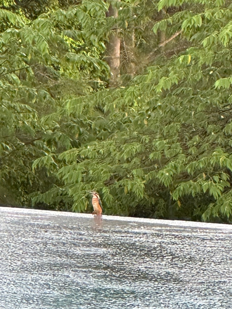 We saw a Common Kingfisher. Tonji first spotted it when it landed by the swimming pool. Very nice to have a new migrant visitor! Maybe if we had fish in our ponds we would attract more of them.