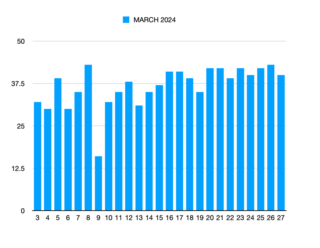 We started keeping track on March 3 and had 32 ducks. That’s 12 more than our highest previous count of 20 Philippine ducks in the Water Lily pond in November 2023. Our new highest count is 43 ducks in the Big Pond on March 8 and March 26. If we assume that the pair of ducks in the Water Lily Pond do not go to the Big Pond, then that makes it a possible 45 Philippine Ducks in the refuge! Almost 50 ducks!!