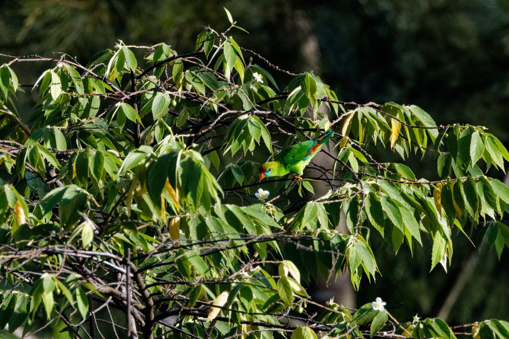 And one of our favorite birds, the Philippine Hanging Parrot or Colasisi. When we hear the call of this bird we already know that we it will be perfectly blended into the leaves and will take a bit of searching before we see it.