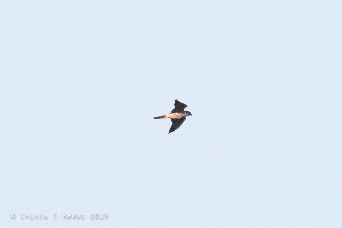 I was taking pictures of the Pied Harrier when I saw a smaller bird zip by. I snapped a few shots of the smaller bird. When I looked at the photos, I couldn’t tell what it was. I sent the pics to top birder Rob Hutchinson for ID. He said it was definitely a falcon but not a Peregrine or Kestrel. He said it was possibly an Amur Falcon or Northern Hobby, except that my photos were too far and blurry to confirm an ID!